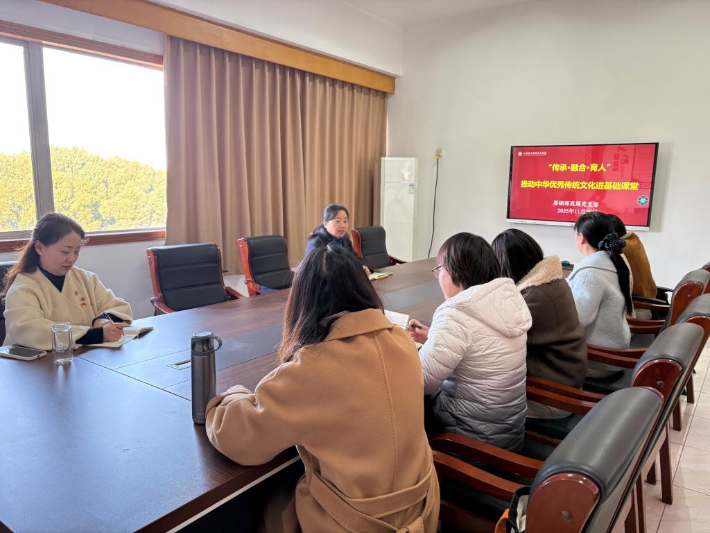 11月28日下午,基础部直属党支部举行“传承·融合·育人——推动中华优秀传统文化进基础课程课堂”主题党日活动。活动伊始,全体党员共同学习了关于传承中华优秀传统文化、坚定文化自信、在新征程上讲好中国故事的重要论述,为后续研讨奠定了思想基础。