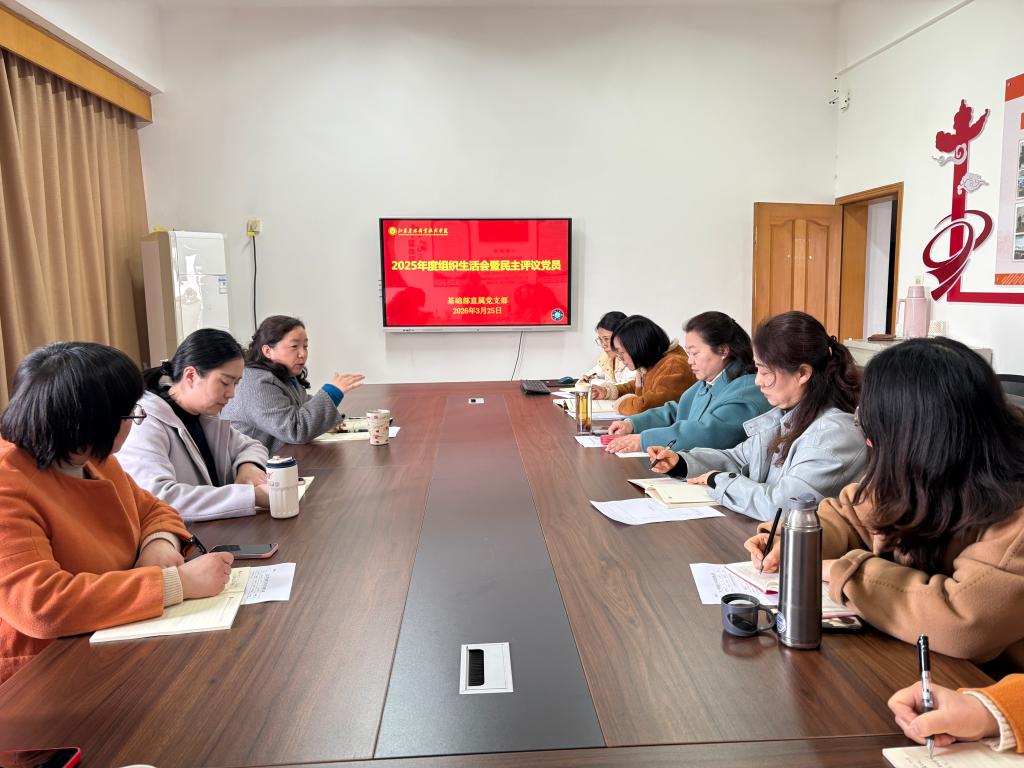 3月25日下午,基础部直属党支部在综合楼406会议室召开2025年度组织生活会暨民主评议党员会议。会议由直属党支部书记陈立娥主持,全体党员参加。